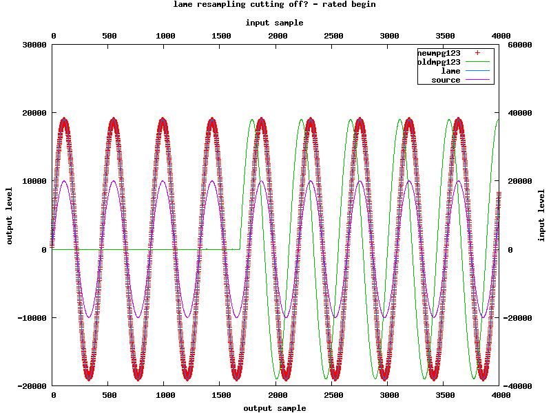 ls -l *.raw -rw-r----- 1 thomas users 166076 2006-06-16 15:17 rated.lame.raw -rw-r----- 1 thomas users 163212 2006-06-16 15:17 rated.newmpg123.raw -rw-r----- 1 thomas users 172800 2006-06-16 15:17 rated.oldmpg123.raw -rw-r----- 1 thomas users 80828 2006-06-16 15:17 resampled.lame.raw -rw-r----- 1 thomas users 77500 2006-06-16 15:17 resampled.newmpg123.raw -rw-r----- 1 thomas users 87552 2006-06-16 15:17 resampled.oldmpg123.raw -rw-r----- 1 thomas users 163212 2006-06-16 14:45 source.rawSo... that means