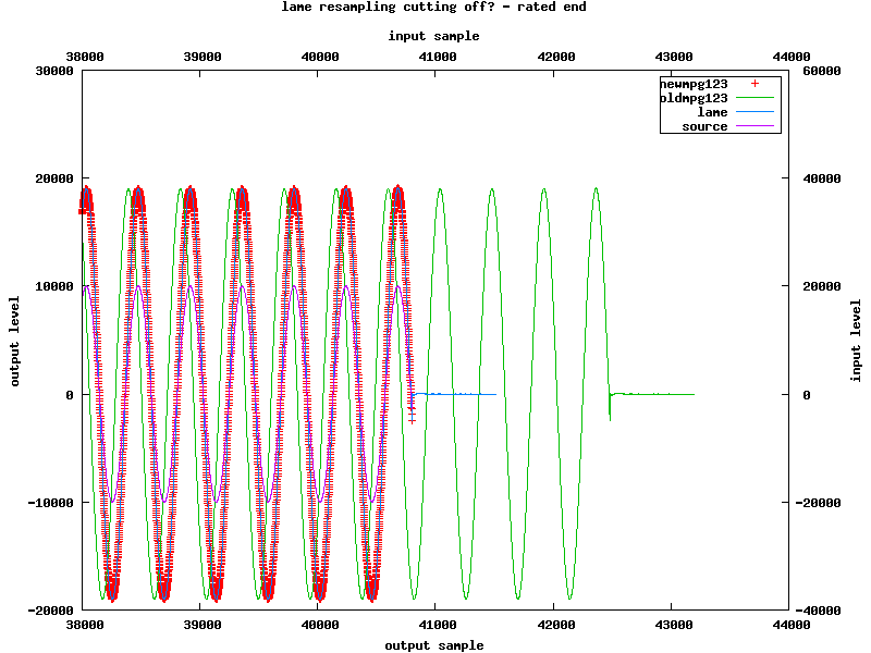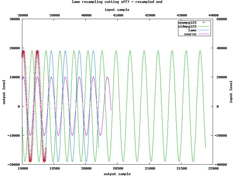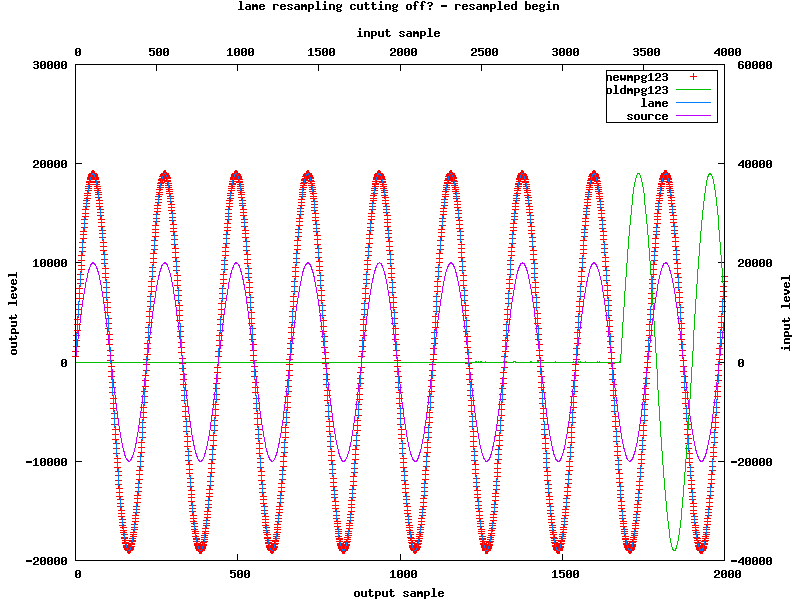 The decoding results from the resampled file are too short for both lame and new mpg123 decoding and still too long for old mpg123, but that's just becaus this version doesn't ignore lame's delay and padding and also adds a silence frame for the lame tag.